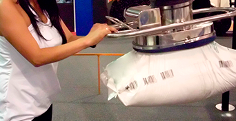 Este sistema permite manipular sacos de fique o yute, por medio de un gancho que al ser accionado agarra y soporta la carga